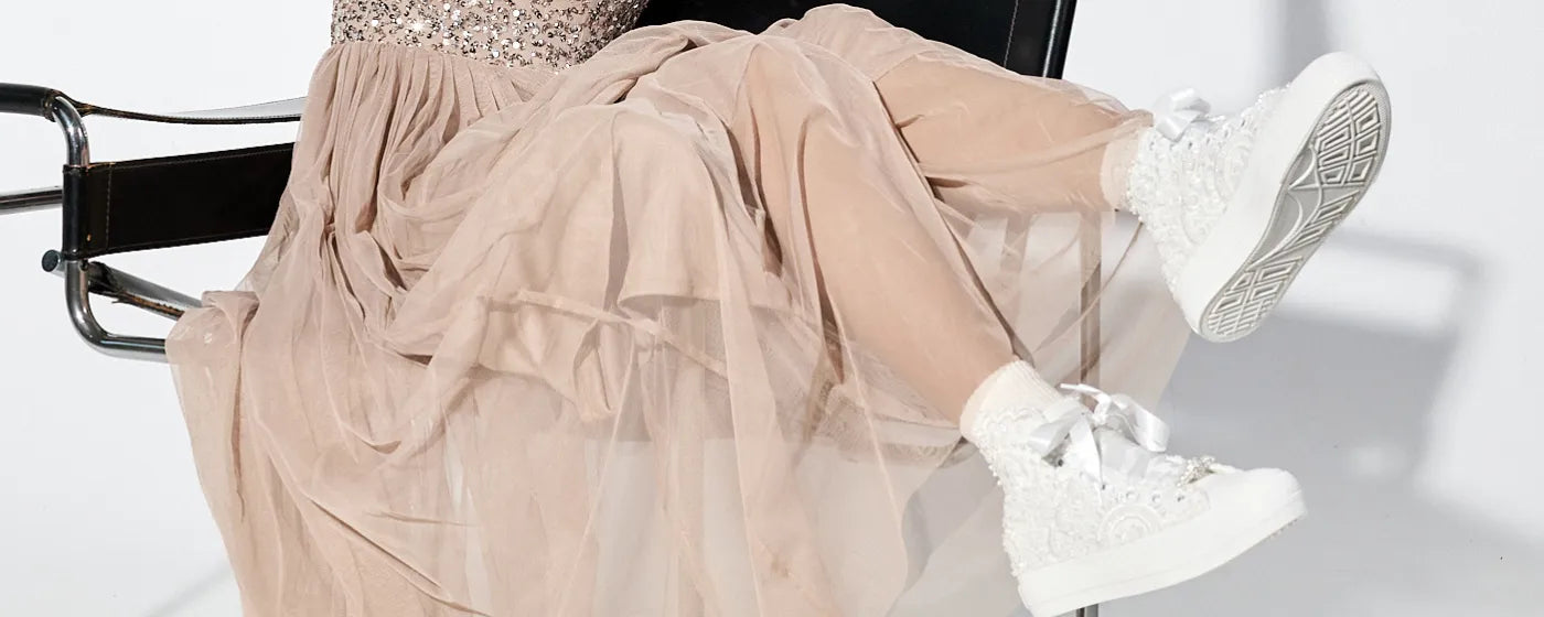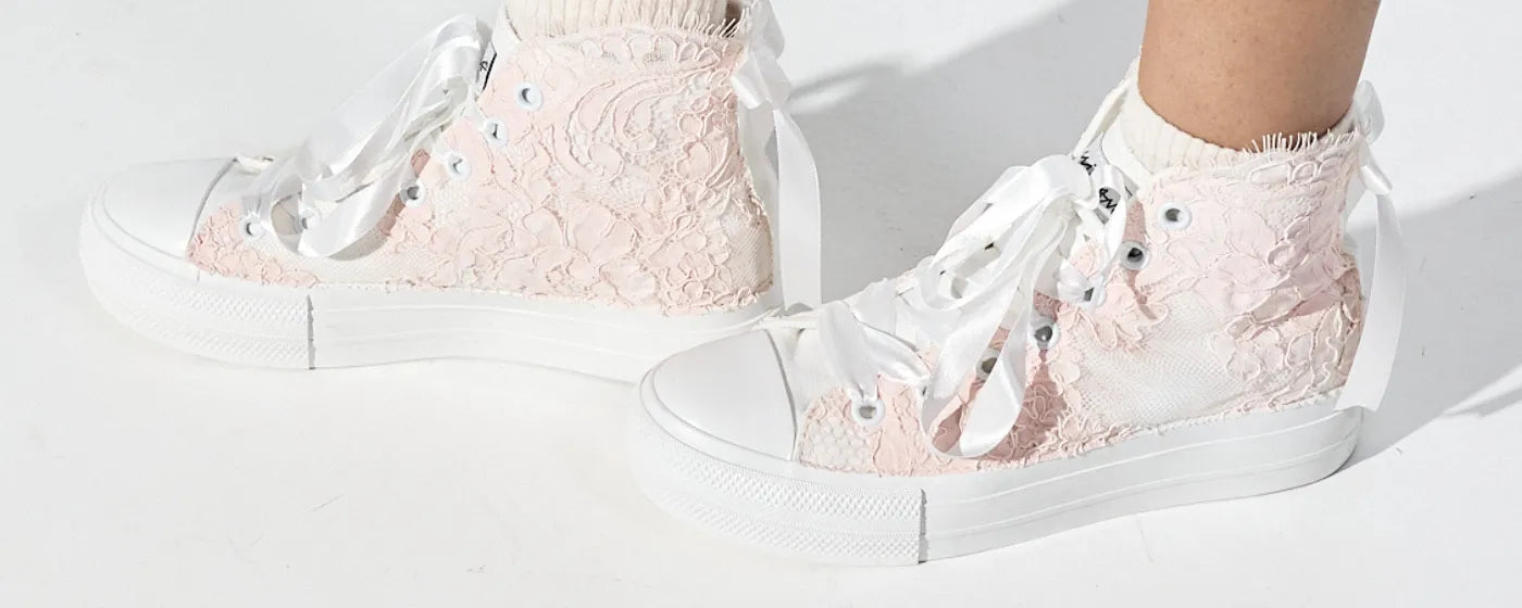 Mimanera wanted to dress your most important and emotional steps with the wedding collection. A refined and elegant sneaker perfect for being unconventional yet full of style. Customized Converse All Stars with craftsmanship and fabrics that make them a jewel of a shoe. Lace, sequins, Swarovski, tulle, and embroidery adorn the Mimanera Bridal Shoes, designed to make you unique and make you feel even more special on your day, to give you comfort, radiance, and embellish your steps towards the altar...the sneakers of your dreams on the day of your dreams.