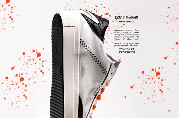 In August 2022, the Mimanera Garage, the official sneakers designed byMimanera, has officially released. The goal and values remain the same as before but what is offered is something much more than simple customization.Garages neakers are the union of years of experience in the footwear industry with an endless passion for innovation.